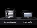 The Protron 3K is a new high powered LED strobe featuring (200) CREE™ 3W Cool White LEDs, 80,000 lumens, 120° beam angle, (2) power modes (HIGH or LOW), strobe effect macros including burst, pulse, lighting, and full ON*, (2) silent cooling fans, electronic dimming, 3/5pin DMX and powerCON in/out connections, (4) button LCD control panel, an integrated rigging yoke, 900W max power consumption, and a multi-voltage universal auto switching power supply (100-240v). *Thermally regulated output at full max 10 seconds.